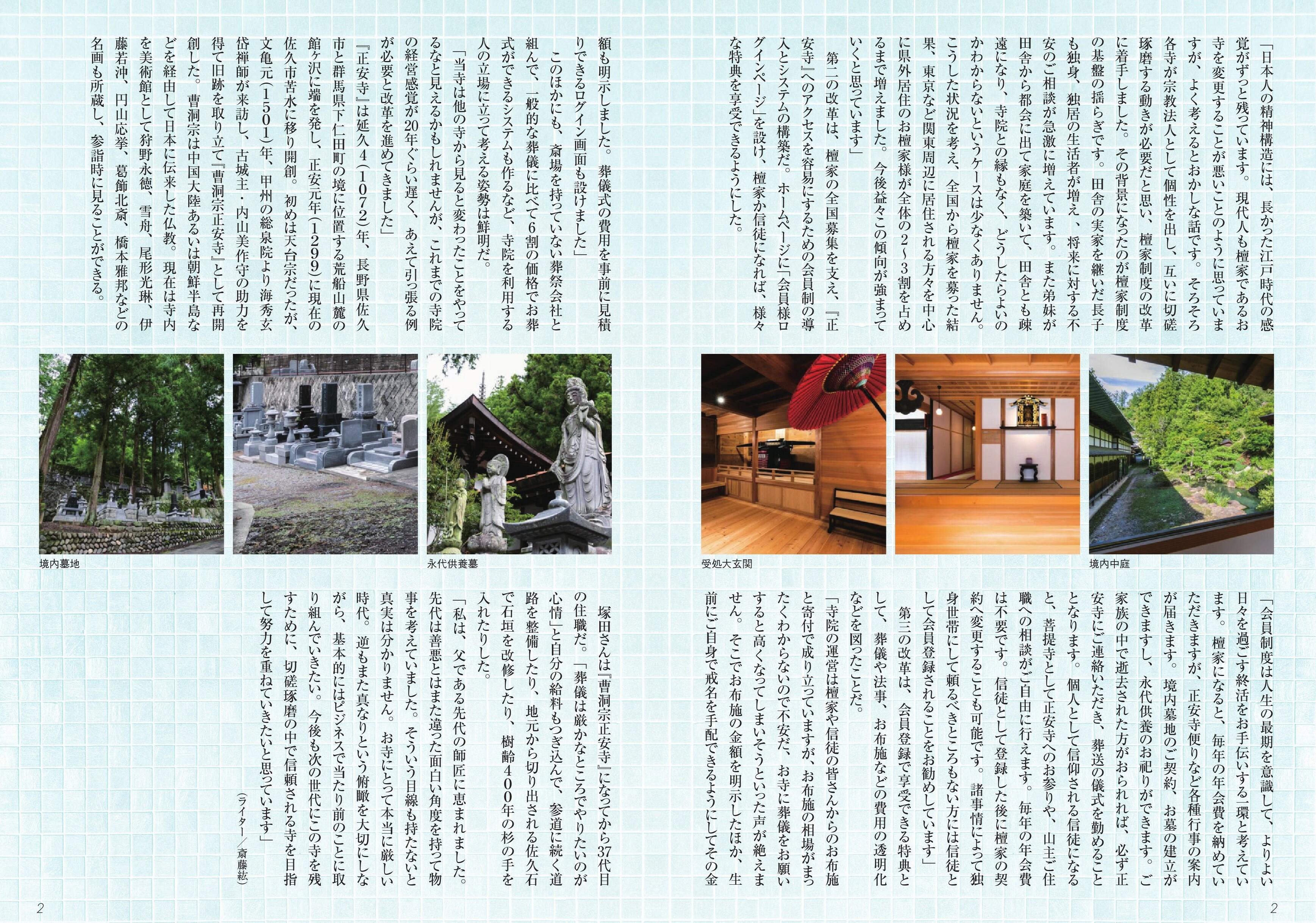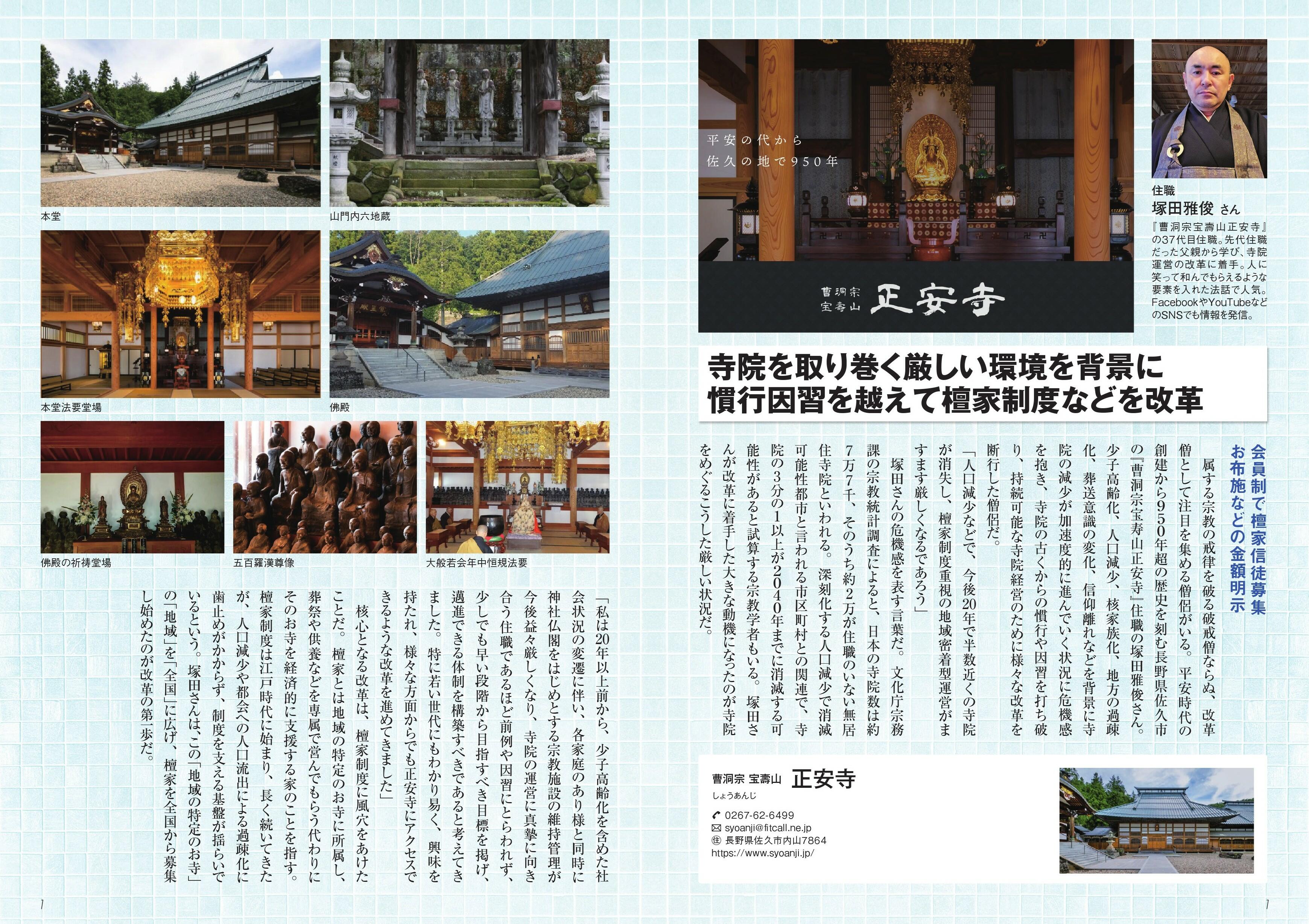 今回は、正安寺の【公式】ホームページをご覧になられた、刊行物発行社のMr.Partnerさんからお話しをいただき、その先駆的試みを是非広く知って頂くご協力を、とのことにて、パソコンを使用しながらの打ち合わせや、校正等を進め本年11月に発刊されました。